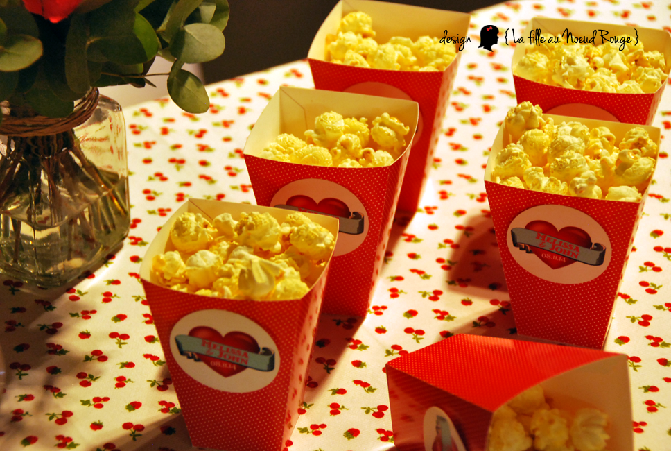 | Décoration de table, candy bar, sweet table Création personnalisée ou création sur-mesure pour anniversaire, mariage, baptêmeContenant à popcorn Étiquette de table, étiquette fanion, étiquette ronde, étiquette sur pic, étiquette avec ruban, étiquette autocollante, pancarte, banderole, photobooth… www.lafilleaunoeudrouge.fr |