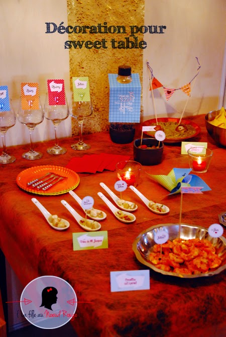 | Décoration de table, candy bar, sweet table Création personnalisée ou création sur-mesure pour anniversaire, mariage, baptêmeÉtiquette de table, étiquette fanion, étiquette ronde, étiquette sur pic, étiquette avec ruban, étiquette autocollante, pancarte, banderole, photobooth… www.lafilleaunoeudrouge.fr |