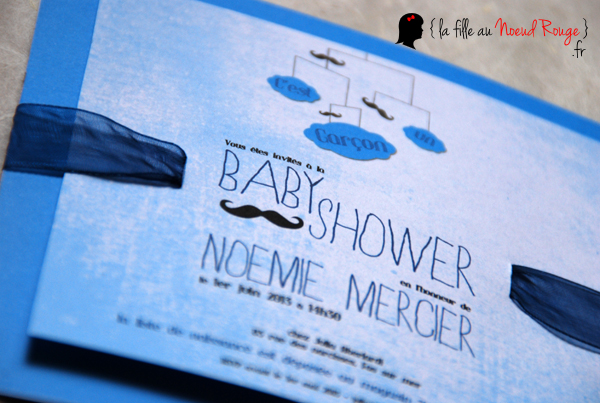 | Une invitation aux couleurs de baby boy Invitation personnalisée pour Baby Shower sur le thème de la Moustache photobooth couleur bleu et turquoise mobile bébé www.lafilleaunoeudrouge.fr |
